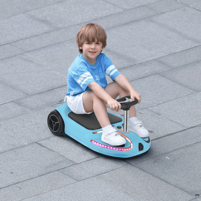 Der Chic Flow Glide ist ein innovatives und sicheres E-Gokart, das speziell für Kinder ab 3 Jahren entwickelt wurde. Mit seinem eigenen elektrischen Antrieb bietet er Fahrspass – ganz ohne Hoverboard! Dank seiner kompakten Bauweise, dem leichten Handling und den LED-Lichteffekten ist er die perfekte Wahl für kleine Rennfahrer und Rennfahrerinnen.