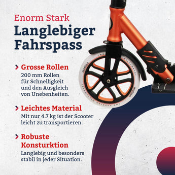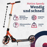 Der Motion City Scooter Speedy ist der ideale Weggefährte für kurze Distanzen und garantiert eine einfache Anpassung an deine Körpergrösse für eine optimale Haltung. Sein Faltmechanismus ermöglicht es, ihn kompakt zu verstauen, während die grossen Räder eine schnelle Beschleunigung und ein ausgeglichenes Fahrverhalten auf unebenen Fahrbahnen versprechen. Ein treuer Alltagsbegleiter, der nicht nur mühsame Fusswege ersetzt, sondern auch Fahrspass pur bietet.